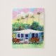 Gammal planteringstuga i blå pussel