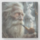 En gammal sjöman med ett långt vitt skägg och djupa rynkor ser upp på en kvinnas form dans från hans röktpipa