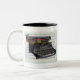 Harken tillbaka till dendigitala åldern med denna skämtsamma illustration av en gammal kranskrivmaskin som läggas över över "ömt ställebrunträven…", pangram som framförs i hand plockadetext. Underbar mugg för någon författare eller redaktör eller för någon som gillar vintagemaskiner.