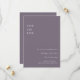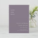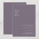 Dela med dig av er bröllopsdatum med vintageinspirerad charm med detta minimalistiska "Spara datum"-kort. Designat med en mjuk, dämpad lila bakgrund och skrivarstilad text med fast teckengleshet, är detta kort perfekt för par som uppskattar subtila detaljer och retroenkelhet. Lämpligt för bröllop med litterärt tema, moderna minimalistiska evenemang eller återhållna firanden. Anpassa enkelt med er bröllopsdatum, namn och webbplats för ett rent och tidlöst meddelande.