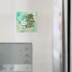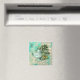 Vacker gammaldags collage med mintfärgad tekannillustration med lövverk och grön fjäril på pastellblå åldrad efemär bakgrund
