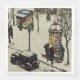 Denna pappra napkin har en gammal gatuscen på vintern som är täckt med snö av en antikisk bil, butiksfronter och människor som handlar.
