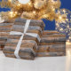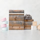 Gammal vägg av träplankar med sprickor. Ångel till Presentpapper