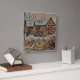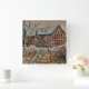 En konstnärlig design av en härlig gammal Tudor byggnad med det tomma huset på bekläda och stablingen i en borggård baktill, på ett mycket kallt, frost och snö täckte natt.
