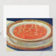 Gammaldags illustration hälsosam matdesign med en skål ångande het tomatssoppa med ärtor och bitar av morötter. Den perfekta rätten på en kall vinterdag.
