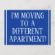 Denna traditionella design för vykort för adressändring har meddelandet "JAG FLYTTAR TILL EN ANNAN LÄGENHET!" på framsidan och ett anpassningsbart meddelande på baksidan. Vykort som detta kan användas för att informera vänner och släktingar om att avsändaren har flyttat till en ny bostad.