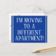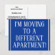 Denna traditionella design för vykort för adressändring har meddelandet "JAG FLYTTAR TILL EN ANNAN LÄGENHET!" på framsidan och ett anpassningsbart meddelande på baksidan. Vykort som detta kan användas för att informera vänner och släktingar om att avsändaren har flyttat till en ny bostad.