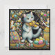 En gammal tavla som föreställer en söt vit katt som spelar fiol. Han har fått några vackra påskägg i present. Bilden påminner om historien om Hey Diddle Diddle, Katten och fiolen. Jag har vridit på Nursery Rhyme till ett påsktema. Detta skulle vara ett förtjusande, billigt kort att ge till ett barn, eller vem som helst egentligen, som samlar påskminnen. Det kommer att skapa lyckliga minnen. Utrymme för att skriva på baksidan av kortet under en mindre version av framsidans bild. Skapad med hjälp av Copilot Designer (bing.com).