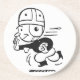 Den svartvita tecknaden av ett fotbollsspelarespring med bollen, räcker ut, redot till kvarteret. Han ha på sig en gammalmodig läderfotbollhjälm. Underbar för fotbollpartyna