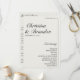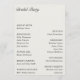 Förfinat och underskattat, den här eleganten ger det vita bröllopsprogrammet en tidlös ålderdomlig känsla för din ceremoni. Dess minimalistiska utformning och rena typsnitt erbjuder klassisk sofistikering för traditionellt eller formellt firande. Ett fint sätt att vägleda gästerna genom dina ceremonier. Anpassa med namn, bröllop-datum och händelsernas ordning.