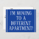 Den traditionella vykortsdesignen för byte av adress innehåller meddelandet "I'M FLYTTA TO A ANNERENT APARTMENT!" på framsidan och ett anpassade på baksidan. Sådana vykort kan användas för att informera vänner och släktingar om att avsändaren har flyttat till ett nytt hem.