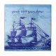 Personifiera detta antikvitet-tittar nautiskt - den themed designen med någon ord som du skulle något liknande. Denna finare, vintagedesign visar en fläckig blåttseglingfrakt/den högväxt frakten med tre masts, flaggor för en koppla ihop (en amerikan), och en svimma, den bekymrade forntida kartan avbildar bak den, en collage som in göras, skuggar av blått. Söt upp din hem- dekor med denna härliga themed design för hav/för hav.