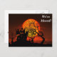 Denna design har en siluett av ett gammalt hus. På en kulle med träd och en orange måne. Med en kyrkogård nedanför hemmet. Detta vykort skulle vara bra för alla som har eller kommer att flytta till en ny adress. Klicka på Anpassa-knappen för att lägga till din egen text eller bilder för att skapa en unik en av ett slag design! Var kreativ på detta vykort
