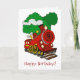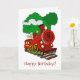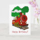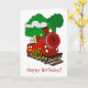 En söt tecknad tåg med nummer 9 på framsidan och rök från stacken och träd i bakgrunden.