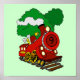 En söt tecknad tåg med nummer 9 på framsidan och rök från stacken och träd i bakgrunden.