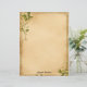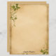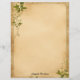 Gammalt pergamentpapper med en gyllenbrun ton, prydnadsrand och illustrerat med gröna vinrankor och blad i det övre vänstra och nedre högra hörnet. Vackert och delikat, lite grungeaktigt, vintage-lookande och slitit, men fortfarande elegant.