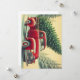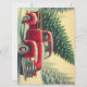 Gammalt rött lastbil med julgran julkort