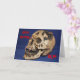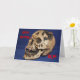 En gammal skull med en blå bakgrund på ett födelsedagskort.