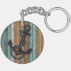 Vintage nyckelring med ankare på akvatisk turkos blå och persikoransje färgad väderbiten träbåtsdäck plankor mönster. Tillverkad för sjömannen, båtägaren, vattensport, båtliv, segling, hav eller sjö älskare. Söt, rolig, klassisk och fashionabla dekorationsföremål för dem som älskar att dekorera sitt herr eller barns sovrum, barnkammare, vardagsrum eller familjerum, collegekorridor, lägenhet, strandhus, lanthus, timmerstuga, husbil eller husvagn, båt eller yacht, sjö eller flod hem, semesterlägenhet eller till och med deras bil med marin tema inspirerad dekoration och accessoarer.