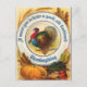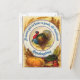 Vintagens Thanksgiving av ett Turkiet på en middagsskylt. Runt plattan står det "Jag vill att du ska ha en bra, gammaldags thanksgiving".