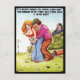 Bilden på detta vykort har återgivits från ett gammalt vykort med tecknad med ett golftema.