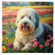 Gammel engelsk fårhund i ett fält av blommor keramisk platta. Lägg till denna bild på andra produkter. Lägg till din egen text också. Många husdjur i mina butiker.