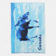 En monokrom (blå) bild av en kosmos som går i snö. Text som läser "Kanada" visas också. Möss bor året runt i många nordliga samhällen. Här i Anchorage finns det omkring 1 500 djur, tillsammans med vargar, brunbjörn och andra vilda djur. De beter sig vanligtvis väl. De gator i kor vid korsningen efter att ha väntat på en promenadsignal. Från ett foto av en älg som vandrade genom min gård.