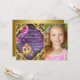 En inbjudan till prinsessans födelsedagsfest med fin guld kunglig vagn på en vacker lila och guld blomsterbakgrund. Du kan enkelt anpassa denna vackra lila och guld saga prinsessa födelsedagsfest inbjudan för ditt evenemang genom att helt enkelt lägga till dina uppgifter i den teckensnittsstil och formulering du väljer. Detta är en tryckt design utan riktig glitter, etc.