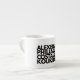 En espresso mugg som är designad med namn av tecknen från den bestssälroman "GÅNG WE WERE" av Christopher Cosmos.