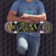 GANGSTA SKATE-text är en konstig skallmobster framför färgstarka lilor.