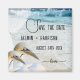 Planerar du en strand- eller destinationsbröllop? Den här fantastiska magneten hjälper dina gäster att minnas DATE. Bilden visar två vackra garner på strandbotten med bröllop, pärlor och snöre.