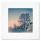 Ett fotografiskt tryck, en gryning i en liten stad.