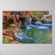 Serene vatten strömmar genom bloggar och vilda blommor och skapar silkesvatten som strömmar in i bassäng nedanför.