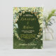 Fånga din speciella dag med det här vackert designade bröllopskorten. Med en palett i grönt färg framkallar denna utformning lugn och lugn i naturen och romantik i ett utomhus firande. Fintvätt av blommigt och saftspänningar ger en aning sofistikering, skapar perfekt för par att planera en trädgård, ett rustiskt eller miljöinspirerat bröllop. Med den här inbjudan kan du anpassa texten så att den stämmer överens med dina unika händelseuppgifter, helt anpassade. Skapa ett varaktigt intryck och inbjudan era gäster i stil med denna charmering och elegant!