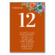 Garden Burnt Orange Boho Chic Wildblomma Bröllop Bordsnummer