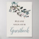 Lägg till de sista detaljerna på dina bröllopsdekorationer med detta tecken som säger "Vänligen skriv i vår gästbok". Det skulle se bra ut ramat bredvid er bröllopsgästbok och se till att kolla in den matchande gästboken som erbjuds i denna samling. Denna design koordinerar med vår "Garden Crest"-bröllopssamling i Eggshell.