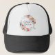 This garden disco bachelorette trucker hat is designed for bachelorette parties, birthdays, bridal showers, and summer events. The design features a colorful watercolor floral wreath with subtle disco elements, combining a floral party theme with a modern disco style.
