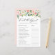 Hitta gästerna. Mingle och chatta med gästerna för att få svar på deras frågor. Lägg till den här roligten och det här spelkortet till evenemanget. Den har blommigt- och vattenfärgsmark av rosa och vit ros, dahlier och peonier med gigantiska accenter. Anpassa genom att lägga till dina frågor. Den här söt blommigtens duschingkort är perfekt för barnduschar och möhippor i vår.