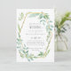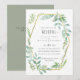 grönt för söt vattenfärg, sage löv med guld-geometrisk ram på detta moderna objekt i bröllop. En del av en större bröllop-budgetsamling som innehåller inbjudningar, spara datum, osa med menyalternativ, etiketter för favoriter och presenter och kuvert, inbjudningskort för möhippa och mycket annat.