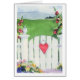 Ett blankt kort med hjärta på trädgården grind.