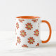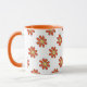 Cute-grafiskt romantiska blommor med orange petals och gult center. Blommor upprepas över hela utskrivbara yta. Mugg-informationen är inställd på matchande orange och kan ändras. Perfekt mugg för de trädgårds älskare! Kommer det att vara någons favorit mugg i sommar?