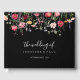 Den här trädgårdsblomman bröllop gäst bok är perfekt för ett rustiskt bröllop. Utformningen har ett flerfärgat sortiment av blommor av rosa, , lila, gult, vitt, violett, rött, burgudisk vild i svart bakgrund. Anpassa framkåpan och ryggraden så att namnen på bruden och brudgummen och bröllop-datumet inkluderas.