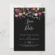 Den här trädgårdsblomman bröllop spara datum är en perfekt för ett multifärgad i bröllop. Utformningen har ett flerfärgat sortiment av blommor av rosa, , lila, gult, vitt, violett, rött, burgudisk vild i svart bakgrund.