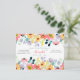 Stark inbjudan till en Garden Party Möhippa. Den har en fantastisk vilda blomma och eukalyptus vattenfärg i skuggor av blått, persika, lila, violett, blått och grönt. Personlig på framsidan med duschinformation och på baksidan med bridens register. Anger en perfekt för en utomhusdusch!