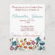 Viktiga blommigtar för vattenfärg markerar den här inbjudan till en Garden Party-Möhippa. Färg är vibrerande och vackert. På inbjudets framsida visningar all duschinformation. Baksidan av inbjudan visar Brides register.