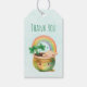 Tack för att du föredrar taggar med en bra illustration med en leende grönt och guld med en söt regnbåge, ett moln från lycklig och lite grönt klöver.