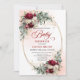 Celebrate a special upcoming arrival with this boho baby shower invitation featuring rich burgundy, deep red, marsala, and maroon watercolor peonies, accented with soft eucalyptus greenery and elegant gold details. This warm, romantic color palette creates a stylish and inviting look, perfect for bohemian, rustic, or modern baby shower themes.