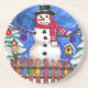 Sandra Gale målade en traditionell snö-man framför ett betesstaket med en glödande jul-ljus som reflekterar över vintern snö. Fåglar, fågelhus och julprydnader gör allt detta till en klassisk julscen som ser underbar ut att slå pappert, helgdagskort och mycket mer!
