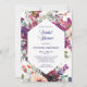 Splashy, vibrant vattenfärgsblomma bilder gör ett färglöst gräns på detta minnesvärda inbjudningskort för möhippan som är lämpligt för vår, sommar och höst. Färg i blommigten bilder omfattar lila violett, blek tangerin, orange, krimson och mjuk grönt. Ett subtilt guld-konfekti-överlägg placeras på den vita bakgrunden och läggs till lite gnistra. I mitten finns en vit sexhörning som innehåller anpassningsbarna mörk blått. Baksidan av inbjudan är heltäckande blått.!