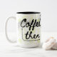 Fun garden theme mug with coffe beans and gardening tool background. Coffee.....then gardening. In that order as it should be.
